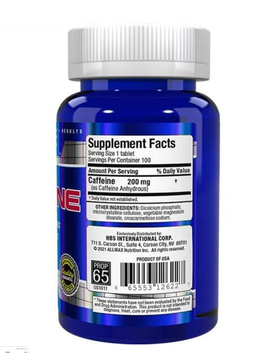 CAFFEINE 200MG 100TABLETS ALLMAX