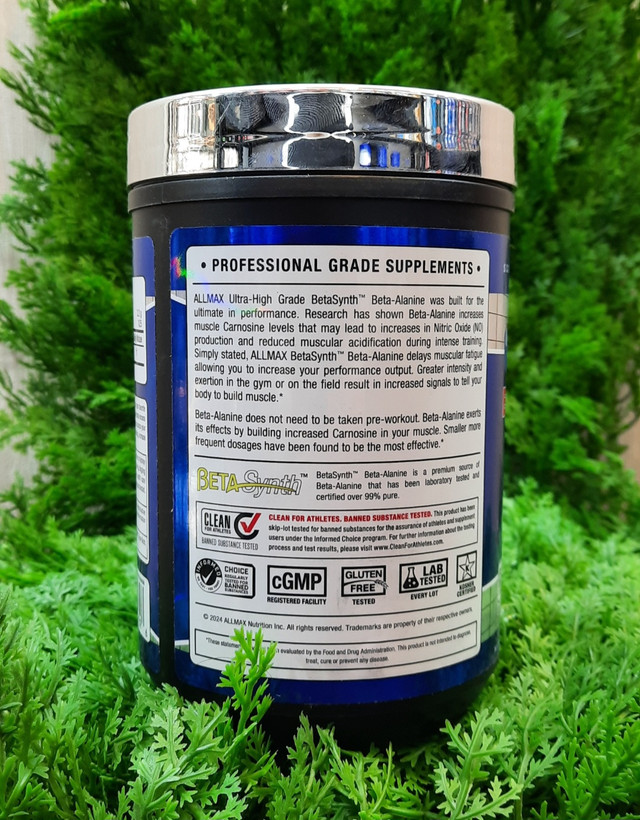 بتا آلانین آلمکس (Allmax Beta-Alanine) یک مکمل ورزشی است که به عنوان یک سوخت آنابولیک عمل میکند و برای افزایش استقامت بی هوازی و هوازی و تاخیر در خستگی عضلانی شناخته میشود. این مکمل با افزایش سطح کارنوزین در عضلات، به ورزشکاران کمک میکند تا عملکرد بهتری در تمرینات شدید و طولانیمدت داشته باشند.